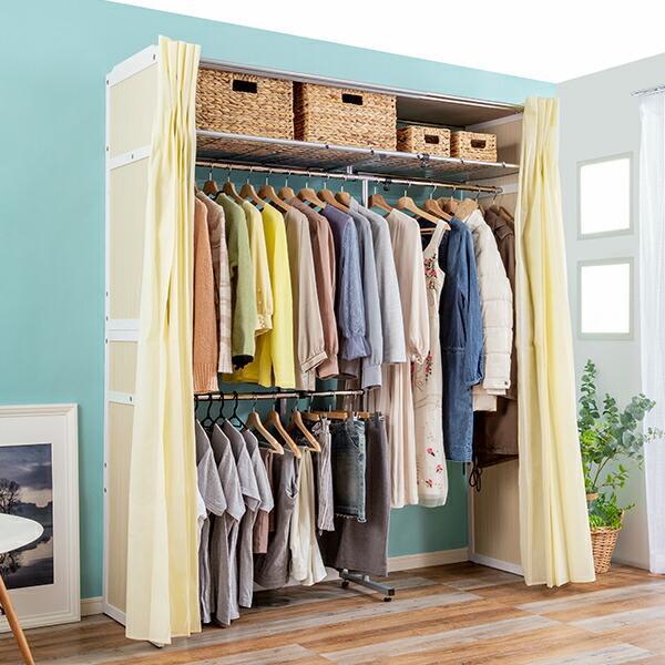 大容量 衣類収納 クローゼット ワードローブ 横伸縮ハンガーラック 洋服掛け カバー付き 2段 収納 ラック クローゼットハンガーラック 洋服ハンガー 送料無料 アウトレットファニチャー 通販 Yahoo ショッピング